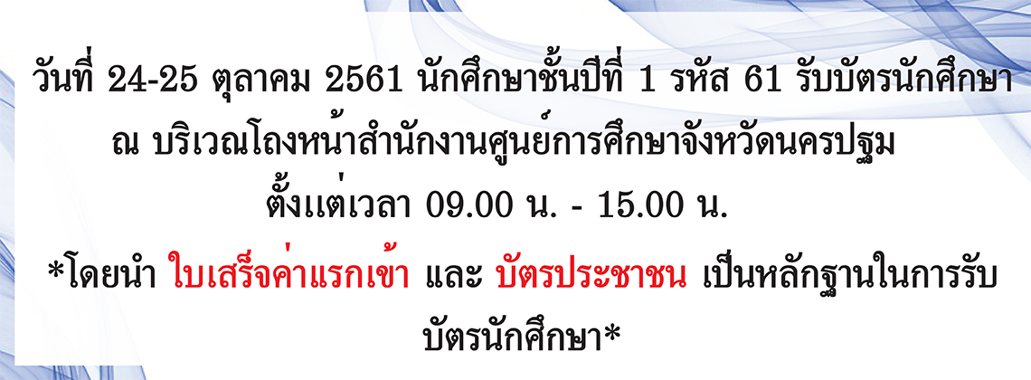 > วันที่ 24-25 ตุลาคม 2561 นักศึกษาชั้นปีที่ 1 รหัส 61 รับบัตรนักศึกษา