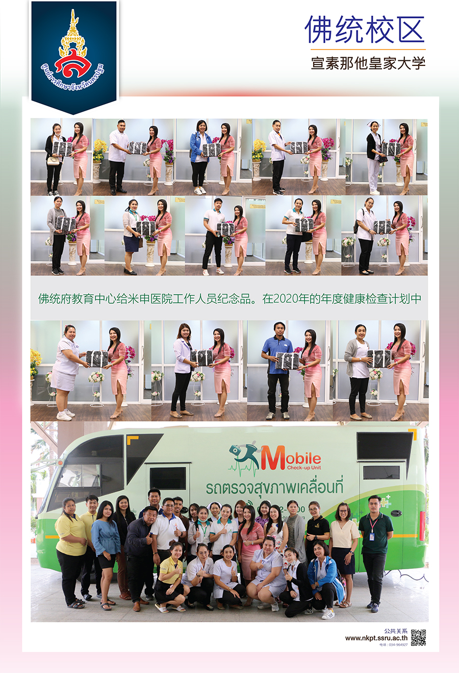 佛统府教育中心给米申医院工作人员纪念品。在2020年的年度健康检查计划中