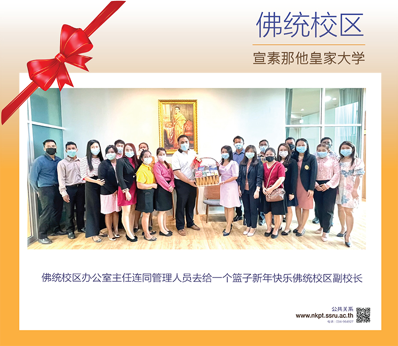 > 佛统校区办公室主任连同管理人员去给一个篮子新年快乐佛统校区副校长