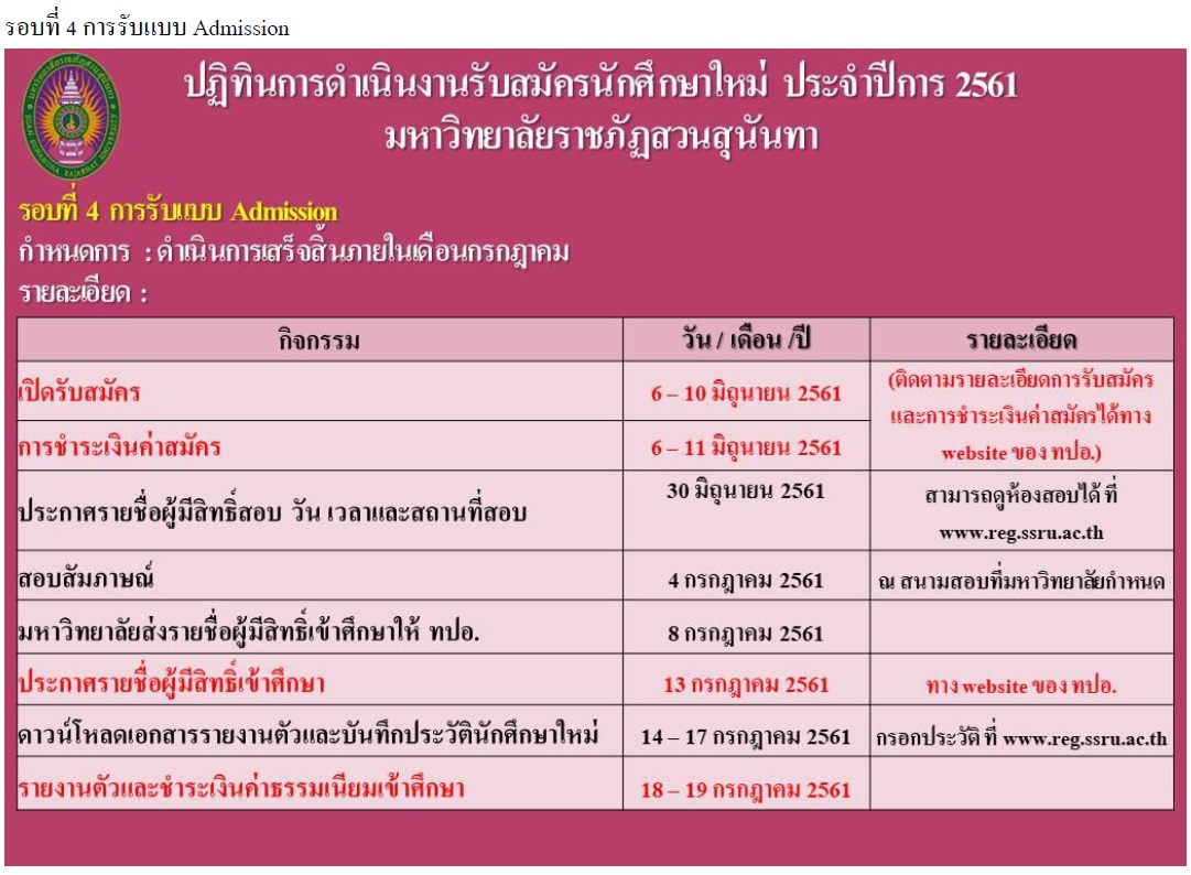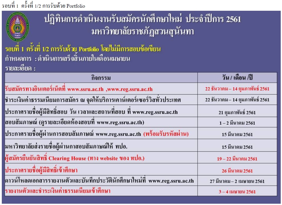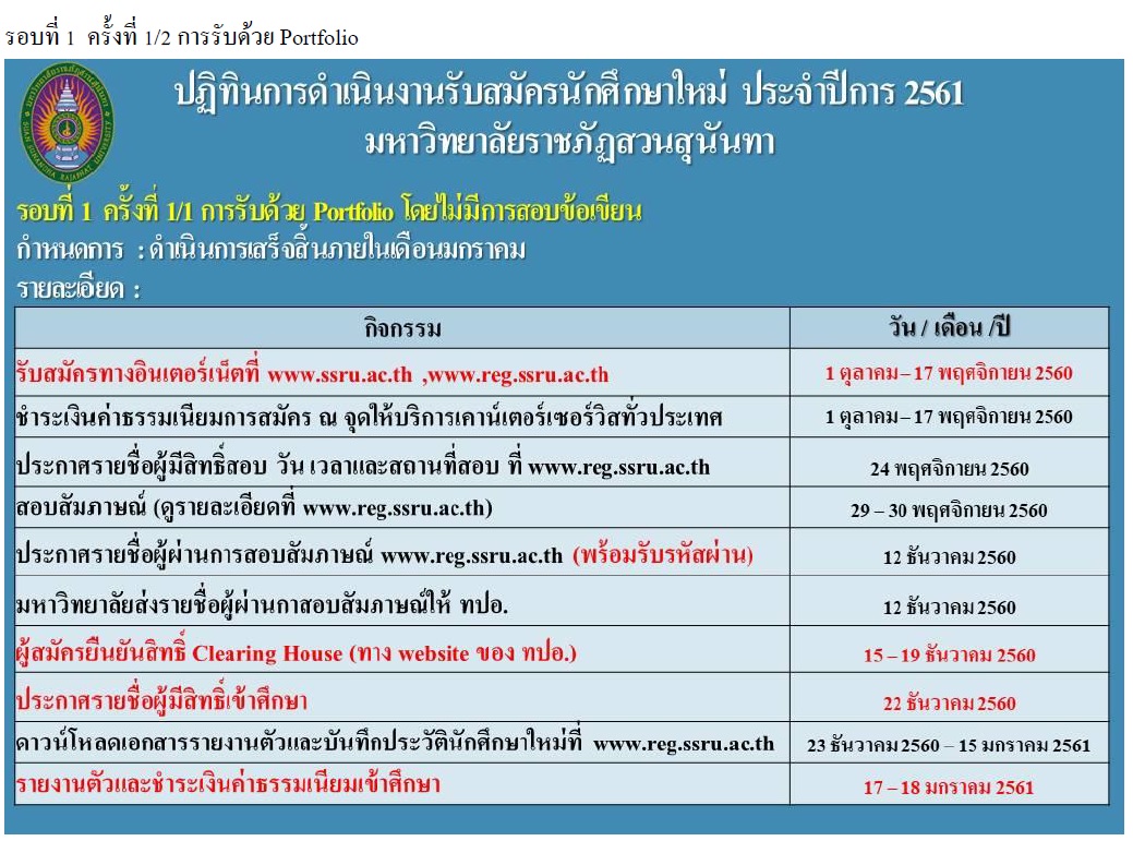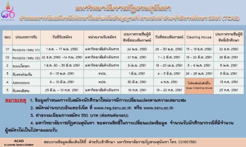 ปฏิทินการรับสมัครนักศึกษา ระบบ TCAS มหาวิทยาลัยราชภัฏสวนสุนันทา