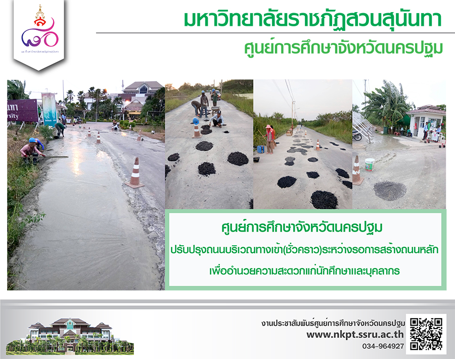 ปรับปรุงถนนบริเวณทางเข้า(ชั่วคราว)ระหว่างรอการสร้างถนนหลักเพื่ออำนวยความสะดวกเเก่บุคลากรเเละนักศึกษา