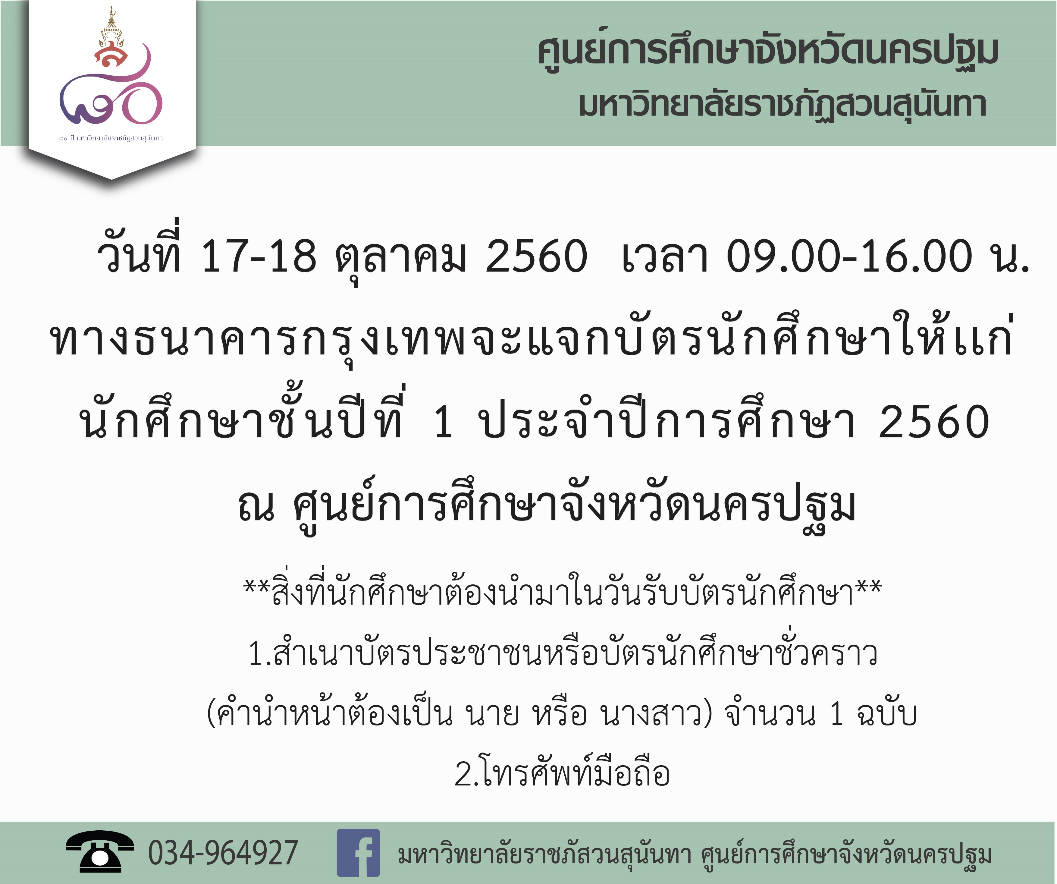 ธนาคารกรุงเทพแจกบัตรนักศึกษาให้เเก่นักศึกษาชั้นปีที่ 1 ประจำปีการศึกษา 2560