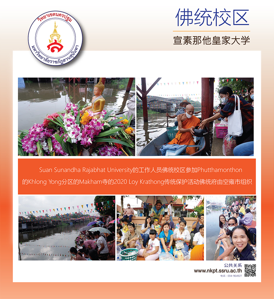 หน้าหลัก > ข่าว > 学校新闻 > Suan Sunandha Rajabhat University的工作人员佛统校区参加Phutthamonthon的Khlong Yong分区的Makham寺的2020 Loy Krathong传统保护活动佛统府由空雍市组织