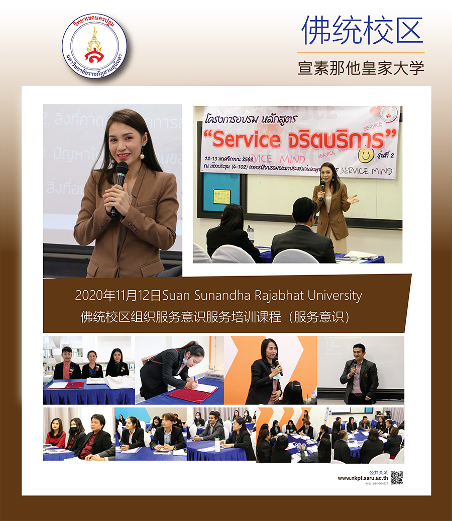 2020年11月12日,SSRU佛统校区在物流与供应链学院1号楼1-204会议室举行了第二组“服务意识”培训项目,该培训项目由Naphak Theephokthanakul女士讲授。