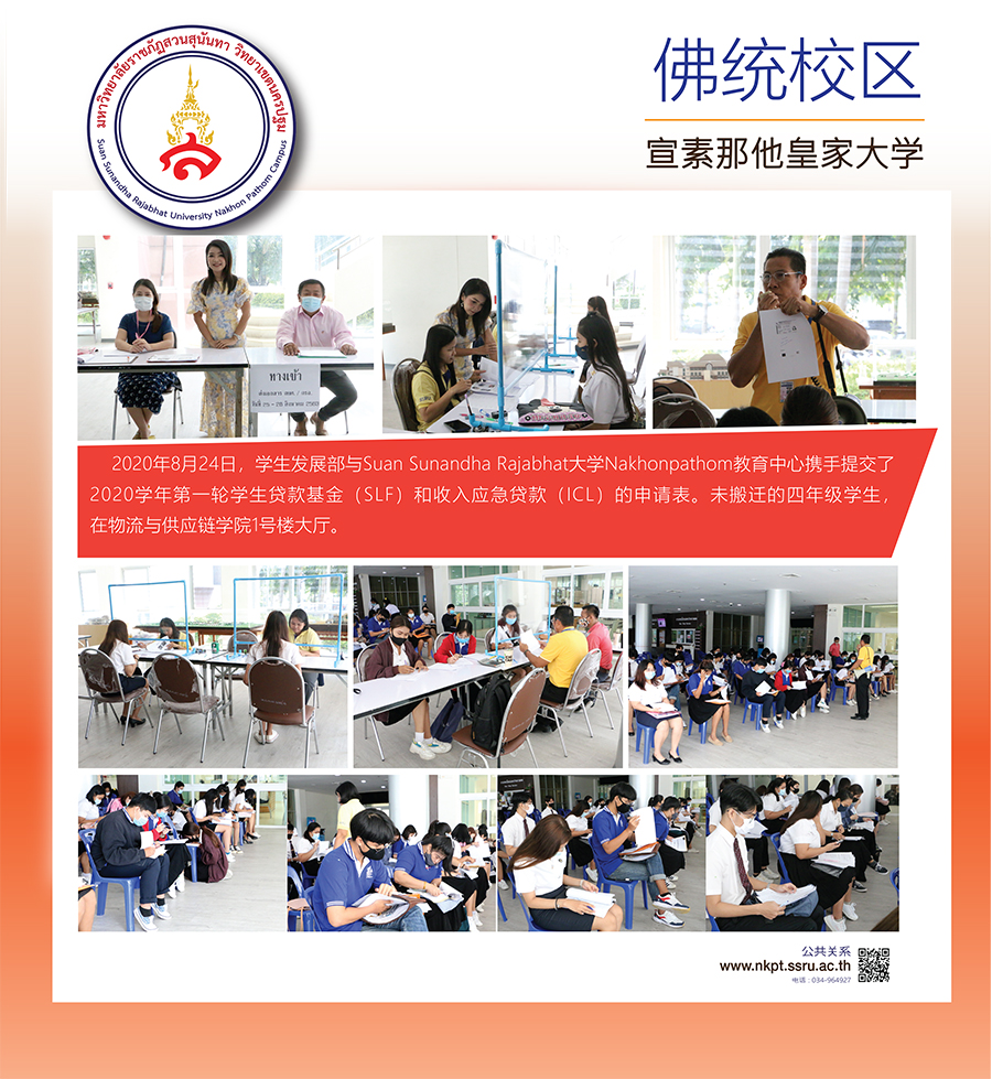 学生发展部Suan Sunandha Rajabhat大学与Suan Sunandha Rajabhat大学合作佛统校区安排提交第三轮和第四轮贷款申请表的文件,以便与2020学年的未来收入(PHO)相关的学生贷款基金(NBTC)和教育贷款基金借款