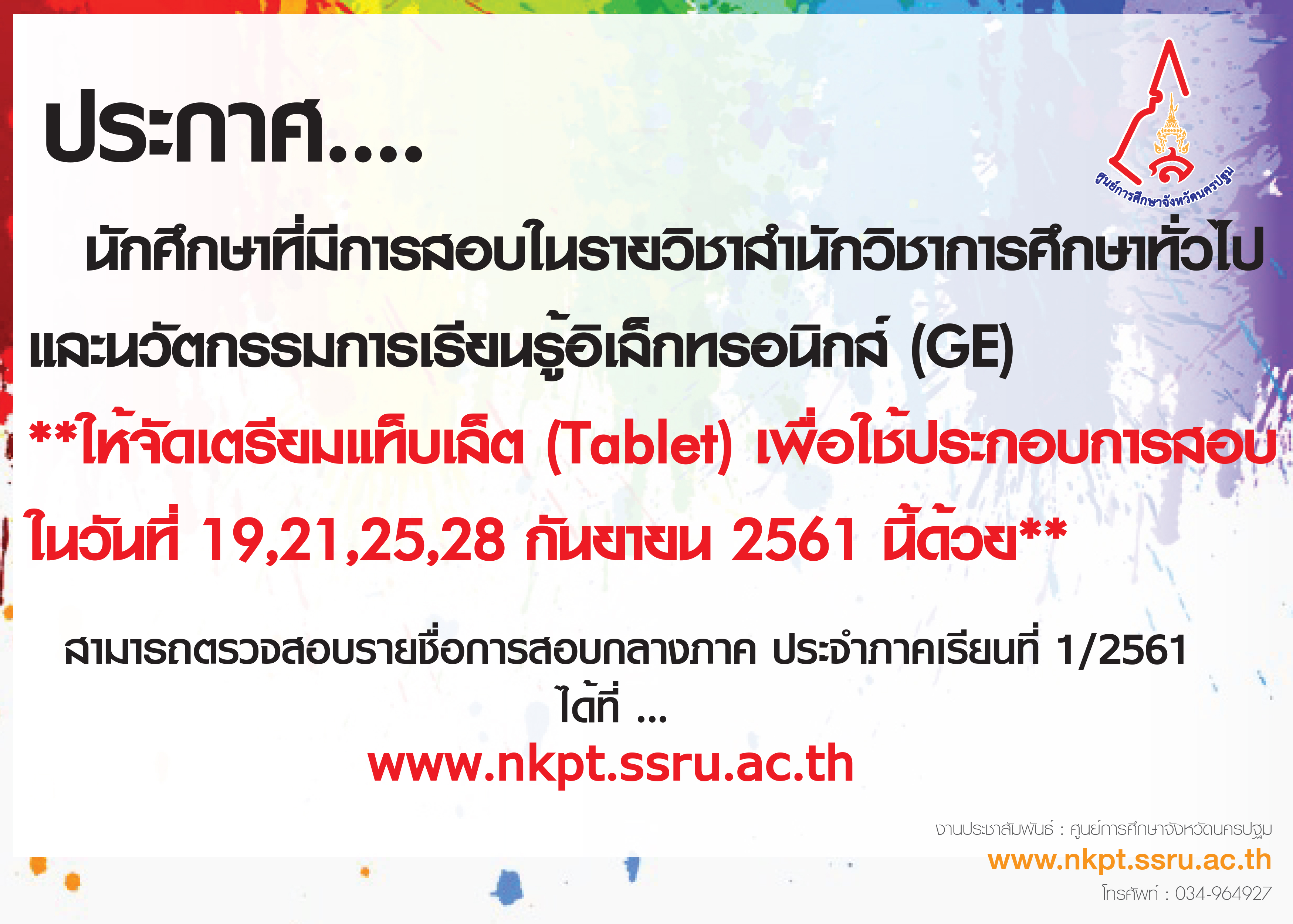 (Tablet) เพื่อใช้ประกอบการสอบ ในวันที่